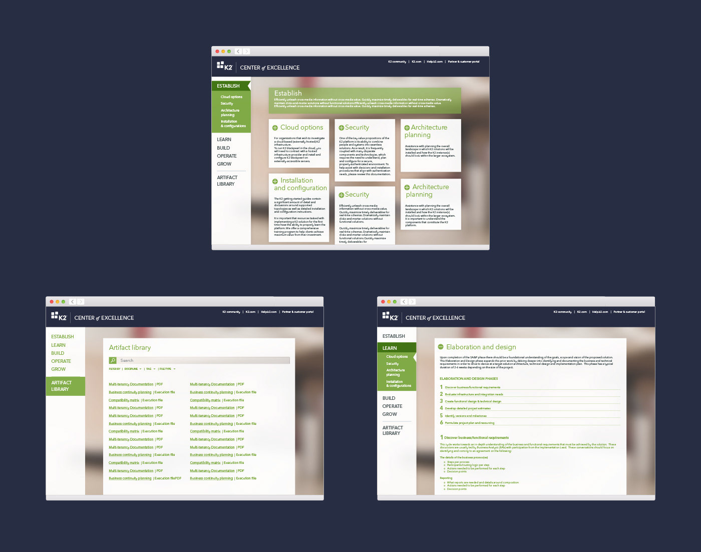 This gated site is meant as a resource library for customers using the K2 platform. It guides them through the K2 methodology and best practices as they implement their own solutions.