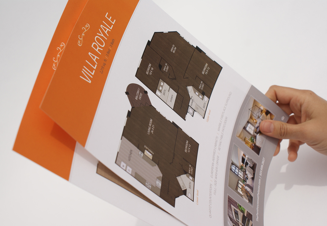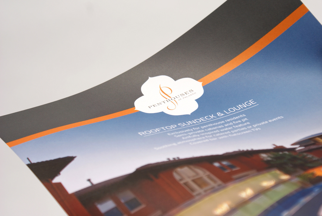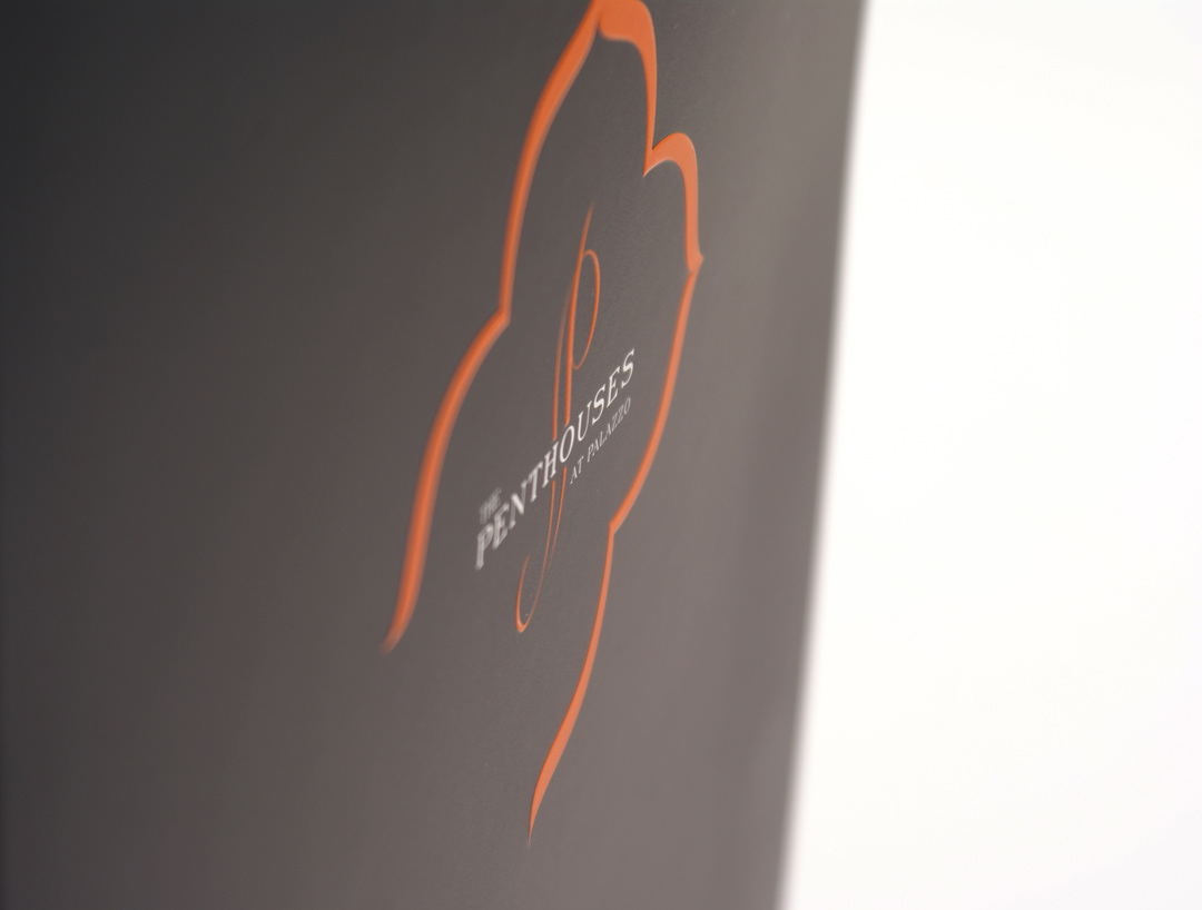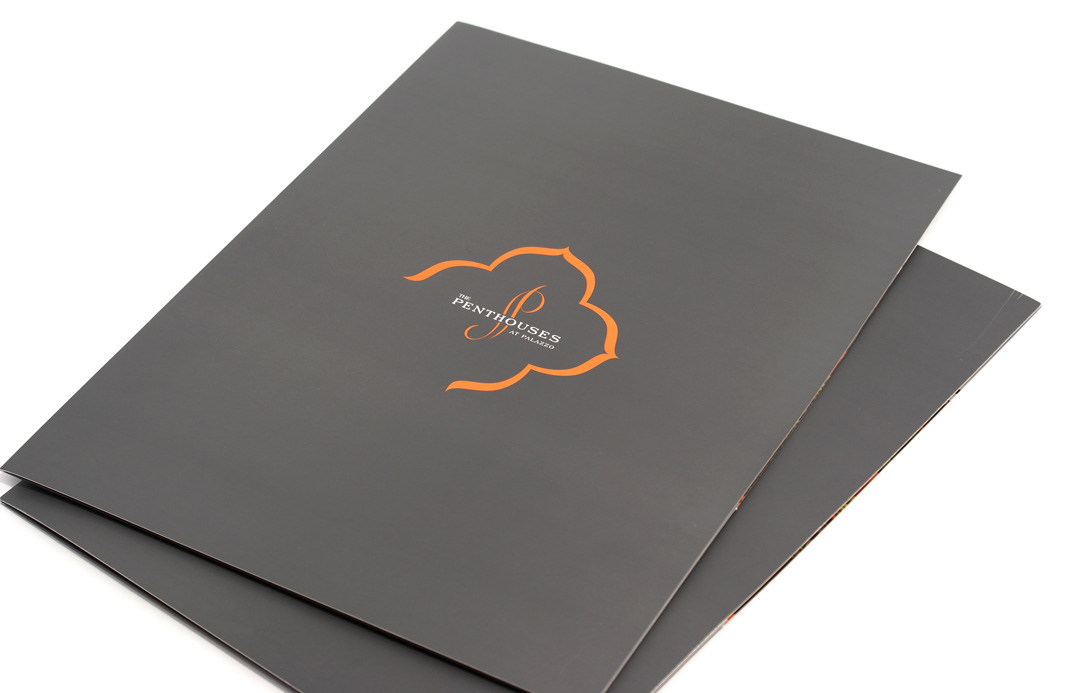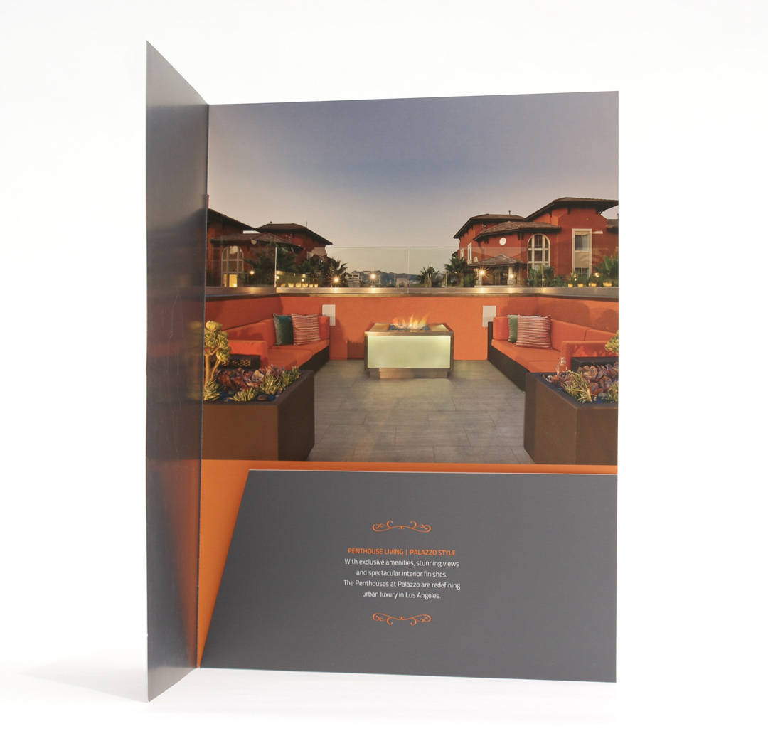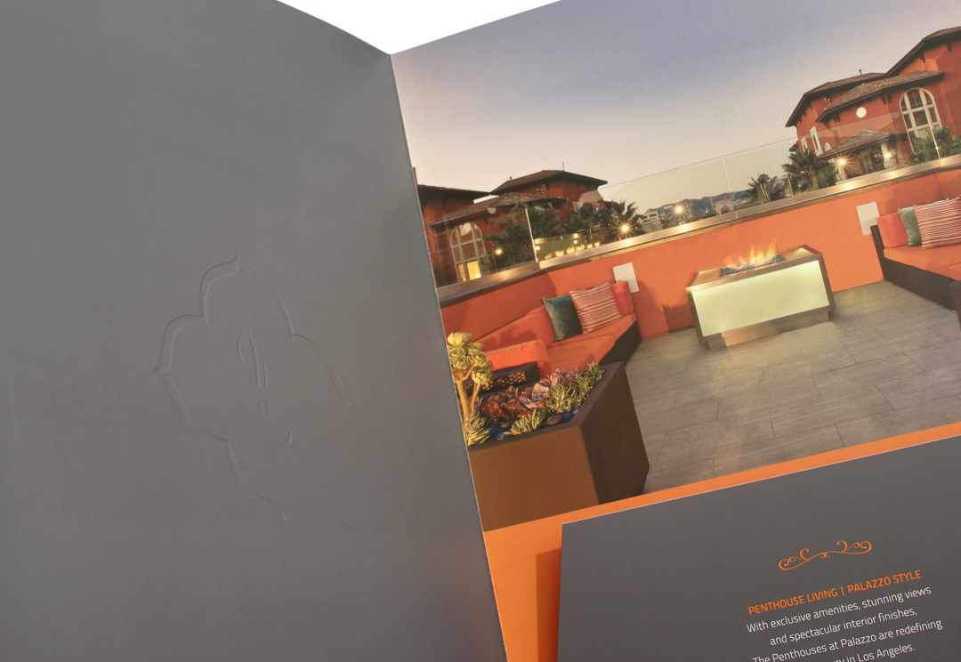 Leasing material for luxury penthouse apartments in Hollywood, CA. Subtle embossing and double soft-touch coating complement the elegant design.
